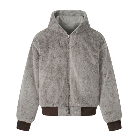 Minimalist Solid Color Fleece Reversible Zip-Up Hooded Warm Cotton Coat