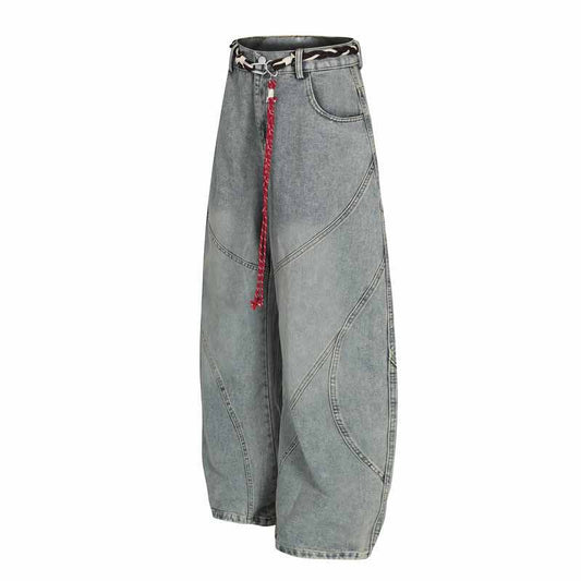 Streetwear Hip-Hop Deconstructed Patchwork Knife-Edge Jeans Unisex Loose Distressed Washed Vintage Wide-Leg Pants
