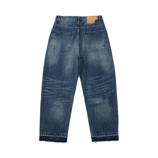 Denim Pants Men's Loose Cuff Tapered Jeans with Catwhisker Wash Casual Long Pants